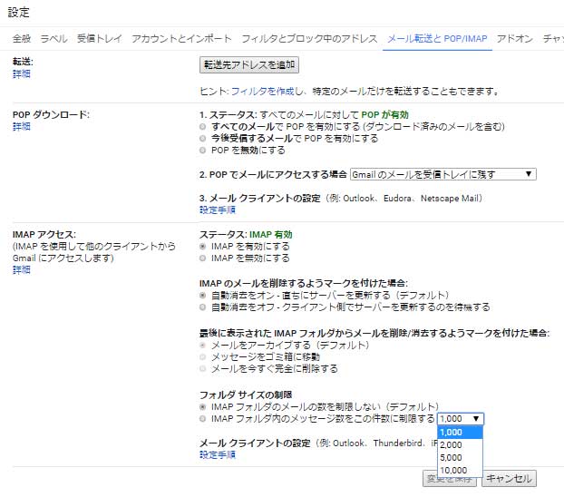 / IMAPフォルダから削除したメールをGmailのゴミ箱に送りたい場合