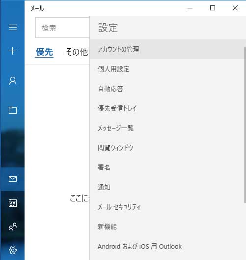 メッセージを変更できないため操作を実行できませんMSG ファイル>オプション>メール>メッセージの保存 メールのアカウント設定でのメールの設定を変更する方法 アカウントの設定>アカウント設定(A)>情報>アカウントの設定」は右側に表示 |