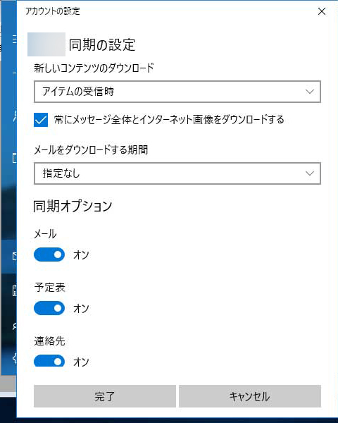 | Outlookのアカウント設定を規定にする。タスクバー大きいアイコンを使用する |