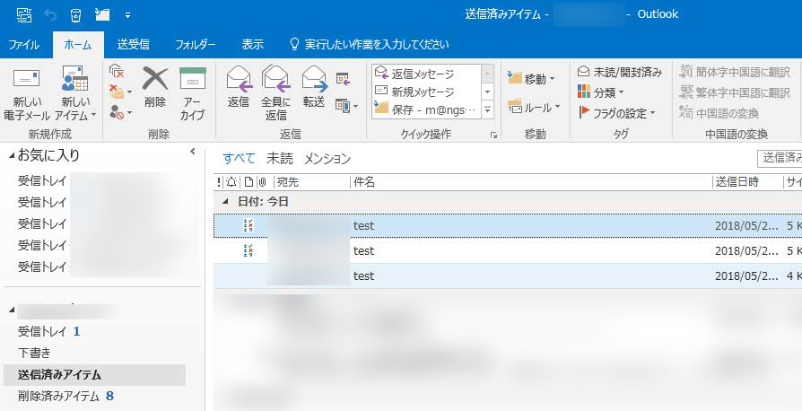 /Outlookの送信メールを自動で送信済み内のフォルダに振分る方法