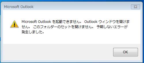 / Microsoft Outlookを起動できません予期しないエラーが発生