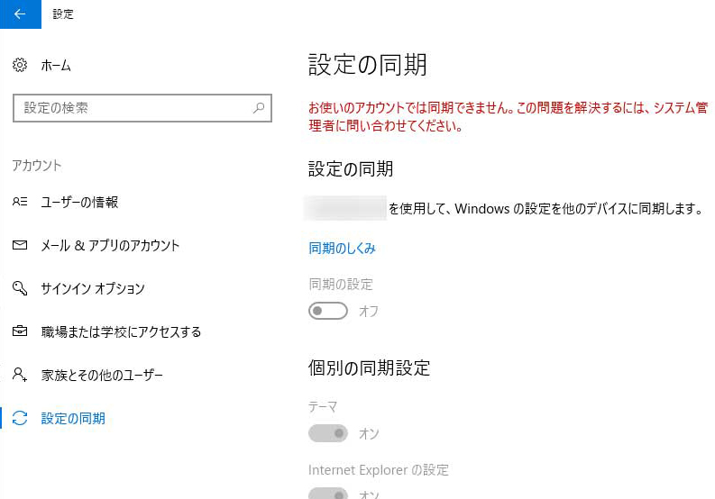 / Windows 10で[同期の設定]が機能しないケース「Windows 10 Creators Update」以降の仕様変更