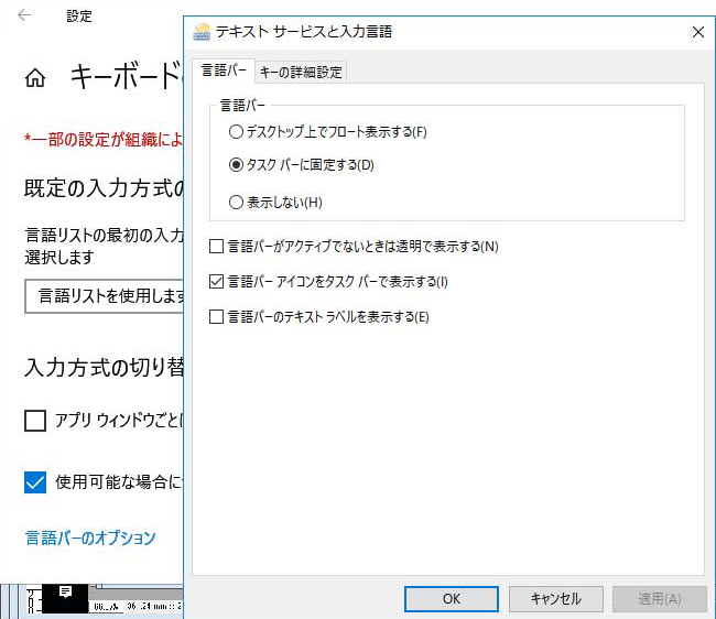 / ime言語バーが表示されない