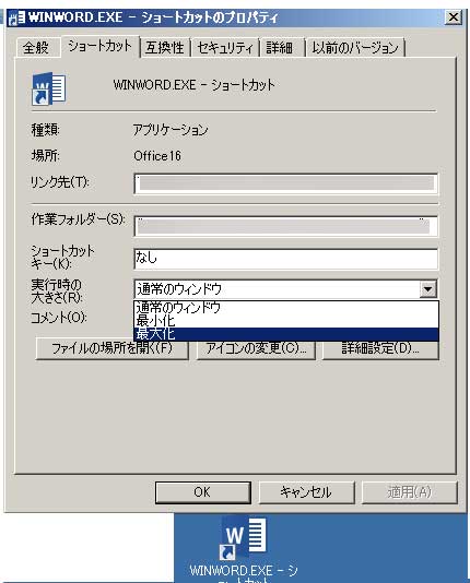 / ショートカットから起動すると最大化できない